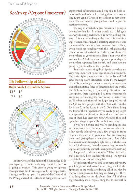 Below is an example of an Incarnation Crosses description. Each one has a Mandala illustration that depicts the positions of the Gates in the Cross.