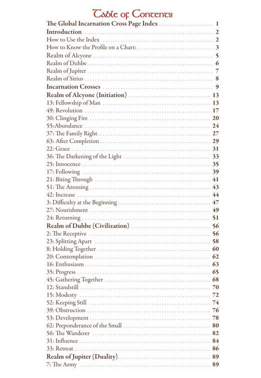 Skip to contentThe Global Incarnation Index covers the 192 Incarnation Crosses. It is organized by Gate, with descriptions for Right angle, Juxtaposition, and Left angle Incarnation Crosses. The book is divided into four sections – one for each realm: Alcyone, Duhbe, Jupiter, and Sirius. It is an edited transcript of a lecture given by Ra Uru Hu, and thus, the language embodies his distinctive manner of speaking. Includes tables and graphs that give instructions for identifying and looking up an Incarnation Cross from a chart.